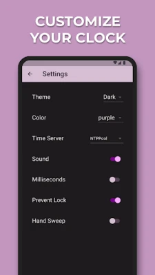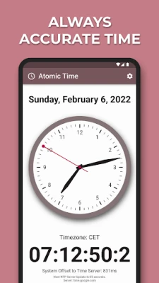 Don tabbatar da ingantaccen daidaito, Atomic Time yana ba ku damar zaɓar daga zaɓuɓɓuka masu yawa na sabar lokaci, yana tabbatar da cewa koyaushe kuna da sauri kuma mafi ingantaccen haɗi. Kuma yadda kuke son amfani da app ɗin ya kasance a hannun ku; za ku iya kunna ko kashe sauti, kiyaye allon yana aiki, har ma da zaɓar yadda sandar sakan ke motsi – ko ta hanyar 'tick' ko kuma mai santsi 'sweep'. Duk wannan yana samuwa a cikin aikace-aikacen mai sauƙi da sauri, wanda aka tsara don kada ya yi tasiri a kan aikin na'urarku, yana ba da kwarewa mara matsala da ingantacciya.