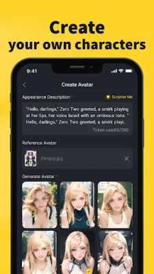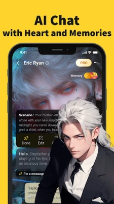 Fantasia: Character AI Chat yana ba ka damar fuskantar gaba ta abota da AI. Rayayyun halittu, masu ƙwaƙwalwar ajiya mai tsawo, suna raye da labarunka. Ƙirƙiri halinka na musamman, yi hira da rubutu, hotuna, da bidiyo a duniyoyin tatsuniyoyi, anime, da shahararrun fina-finai.