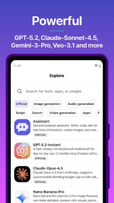Maraba da zuwa Poe, cibiyar Basirar Artificial (AI) da ke haɗa ka kai tsaye da mafi ci gaban samfuran AI a duniya. Poe yana ba da dama mai sauri, amintacce, kuma mara yankewa ga manyan ƙwarewar AI kamar OpenAI's o3 da GPT-4.5, Claude 3.7 Sonnet na Anthropic, da Gemini 2.0 na Google, duk a wuri ɗaya. Ko kana kan wayarka ce ko kwamfutarka, Poe yana tabbatar da samun damar yin amfani da waɗannan fasahohi marasa iyaka a kowane lokaci, yana kawo makomar kirkire-kirkire zuwa tafin hannunka.