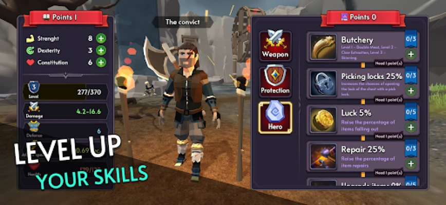 Ka haɓaka ƙarfin hali na jaruminka kamar yadda yake a cikin wasannin RPG na gargajiya. Yi gasa da sauran 'yan wasa don zama gwarzo mafi cancanta, ta hanyar kashe dodanni mafi yawa. Kuma kada ka manta da tattara ganima daga yaƙe-yaƙe don siyarwa ko siyan sabbin abubuwa, don samun zinari da ma'adanai. The Colony na gabatar da zane mai kyau da daɗi a salon Low Poly 3D, tare da kiɗan da zai nutsar da kai cikin duniyar haɗari. Sarrafa wasan yana da sauƙi kuma mai sauƙin fahimta. Wannan wasa ne na RPG kyauta, mai gudana ba tare da intanet ba, kuma ya dace sosai ga masoya duniyar Gothic.